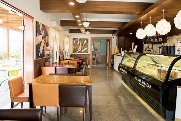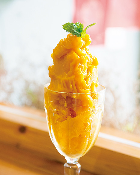 「おいしいフルーツがゆっくり食べられる場所を作りたくて」とマダムが語るように、カウンターには旬のフルーツがずらりと並ぶ。ドラゴンフルーツなど数種をミックスした果汁100%のスムージーをはじめ、これからの季節はやはりマンゴーがおすすめ。特に玉井(ユイジン)のマンゴー、愛文(アイウェン)はひときわ香り高く、甘味も十分でスムージーに最適だという。キュートな店内で、台南フルーツを心ゆくまで味わいたい。