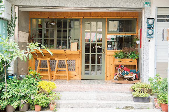 木造りのレトロな外観が愛らしい。カフェの2階では民宿も経営している。