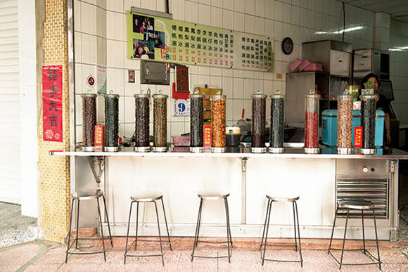 基本となるのはスターフルーツのジュース。これに蜜餞と呼ばれるフルーツのシロップ漬けを加えて氷と食べるスイーツ「楊桃冰」の老舗。50年以上前に屋台からスタートし、2代目が受け継ぐ。フルーツをシロップ漬けにするのは、果物が豊富に収穫できるからこその保存方法。店頭には、梅だけでも4種類、ほかにトマトやマンゴー、スモモなど、特産の蜜餞が常時10種類ほど揃っている。
