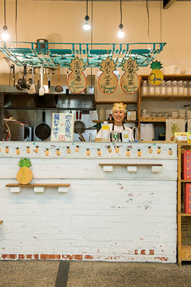 活気づく西市場の一角にあるパイナップル専門のカフェ。看板メニューは「鳳梨冰茶(フェンリービンツァ)」。氷砂糖とパイナップルを約4時間ほどじっくり煮込んだもので、とろとろの果肉入りは、まさに食べるジュース。台南で10種類以上生産されているパイナップルだが、使っているのは台農17號という在来種に改良を加えたもの。繊維が少なく、甘さと香りのバランスが絶妙と、スイーツマニアにお墨付きのジュースだ。