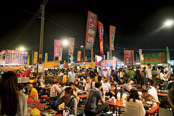 日替わりで開かれる夜市は地元民の夕食の場。最大規模は花園夜市。
