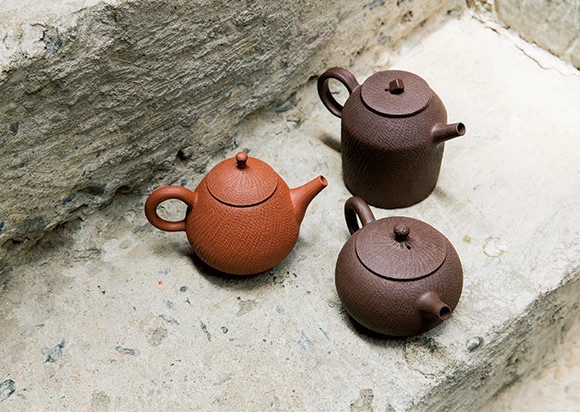 台湾茶の香りを封じ込める紫砂壷は、中国のアーティストに特注したもの。中国やインドから集めてきた美しい茶器を、茶葉のイメージに合わせて。