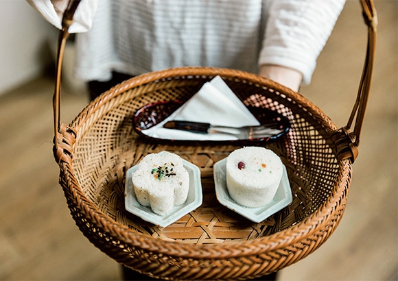 茶の味を邪魔しないことがスイーツを選ぶ際の重要なポイント。茶請けとして作られた台湾スイーツ「松糕」各60元