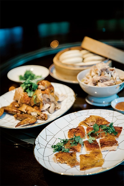 自家農場で放し飼いされている台湾原生種の古早雞は、2日前までに要予約。しっとりとした上質な鶏肉を3通りの食べ方で提供する「掛爐燒雞」2,480元
