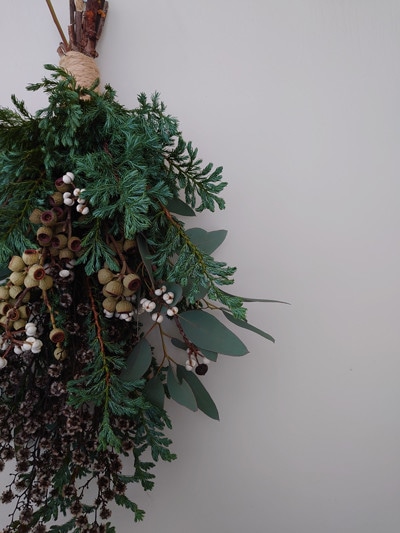 世田谷の花店「forager(フォレジャー)」による、クリスマスの壁掛け“スワッグ”をつくるワークショップ:12月14日(土)12時30分〜14時、16時〜17時30分/参加費用¥6,600