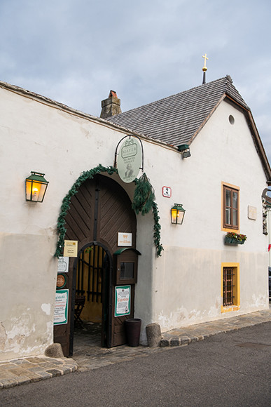 着きました。1817年の夏にベートーヴェンが滞在していた場所としても知られるホイリゲ、「マイヤー・アム・プファールプラッツ(Mayer am Pfarrplatz)」の入り口。