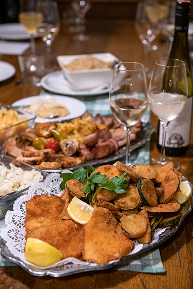 さあ、飲みましょう。オーストリア、揚げ物大国万歳! これと地酒の白ワイン、グリューナー・フェルトリナーの似合うこと。ベートーヴェンもワインが大好きだったそう。ここで新酒を嗜んだのでしょうか。