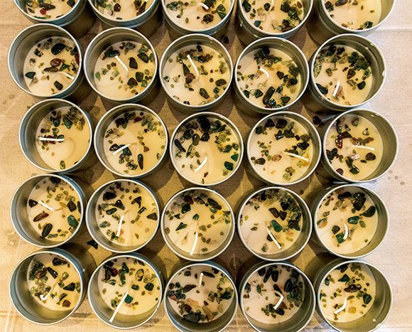 顧客のために6年前からつくり始めたというキャンドル。使用後のストーンも取っておくこと。