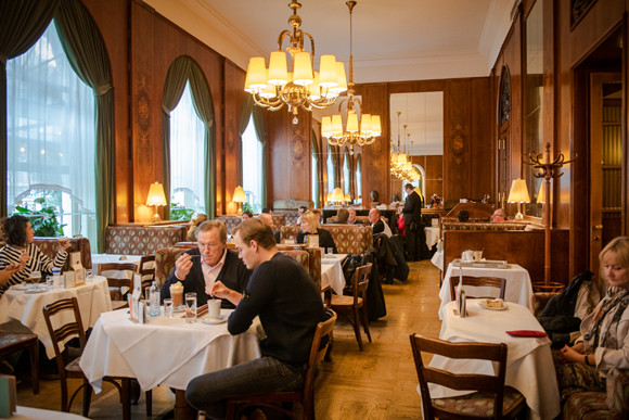 ウィーンに数多く残る老舗カフェのひとつで、ブルク劇場の隣にある1873年創業の「カフェ・ラントマン(Cafe Landtmann)」からこんにちは。かつてはマーラー、フロイトも通った「ウィーンで最もエレガントなカフェ」では、犬ももちろんウェルカム。こんにちワン、ソーセージ&マスタードでも食べる?←どっちもダメです。