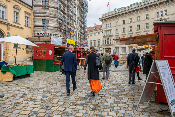 ラララ楽しく踊ろうウィーンで♬とスキップしていたら、フライウング広場でビオマルクト(オーガニック製品の市場)に遭遇しました。ちょっと覗いていきましょう。