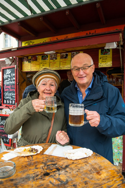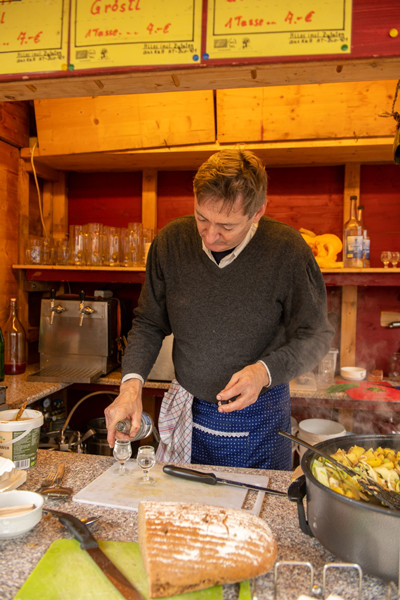 この「フライウング広場ビオ農産物市(Biobauernmarkt Freyung)」は、メインが食べ物屋台なビオマルクト。こちらでも大鍋で何やらおいしそうなものを炒めていたので、「写真一枚撮ってもいい?」と声をかけると、、。