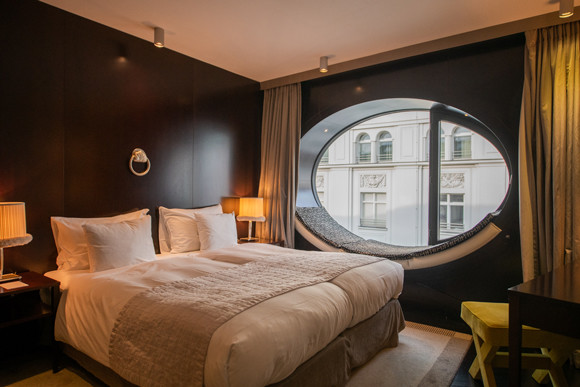 自分×4人くらい寝られそうなベッドが、ふかふかです。ウィーン分離派のひとりとして20世紀末に活躍したデザイナー、コロマン・モーザーからインスピレーションを受けたという楕円型の大きな窓が特徴で、窓辺にゴロリと寝転べるようになっています。ああ、ウィーン分離派ね、はいはい、あれね、、昔のね、もちろん知ってるよ、いま言うよ、、、という自分みたいな人は下記リンクをご参照くださいませ。
