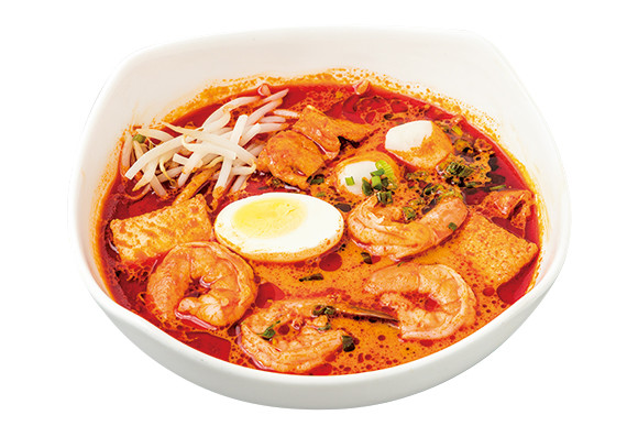 東南アジアのスパイシーな麺料理、ラクサ。米麺&ラーメンの基本メニューを、低糖質でグルテンフリーのしらたき麺に変更できるようにした。スープに絡んで、ひときわおいしい。