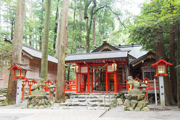 椿大神社は、紀元前3年創始と伝えられる日本最古の神社のひとつ。御祭神である猿田彦大神(さるたひこのおおかみ)は、天孫降臨の際、地上の道案内役を務め、天から降り立った瓊々杵尊(ににぎのみこと)を高千穂の峰へと先導し、国の礎をつくったとされる。「訪れた人に向かうべき道を示してくれ、同時に金運や楽しみごとを与えてくれる場所。境内全体から強いパワーを体感できますが、なかでも参道、拝殿前の石畳の気が強力。別宮の椿岸神社にも立ち寄りましょう。午前中の早い時間に参拝を」と李家さん。地上に生けるものの平安と幸福を招き、導きの神と崇められる猿田彦大神にお参りした後は、その妻神である天之鈿女命(あめのうずめのみこと)が祀られている別宮へ。こちらは芸道の神であり、夫婦円満や縁結びの神としても崇敬されている。山からの清水が静かに流れる境内で、強力なパワーを全身に感じて。