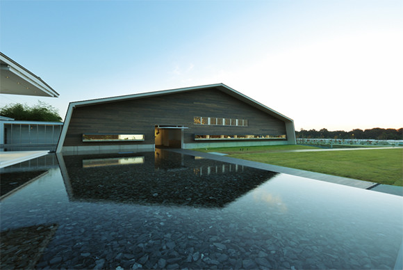 外来の客も利用可能な片岡温泉、温泉カフェ、リラクゼーションエリア、ふたつの和食処に加え、宿泊棟を備えた建物。広大な自然と調和する有機的な建築が特徴だ。
