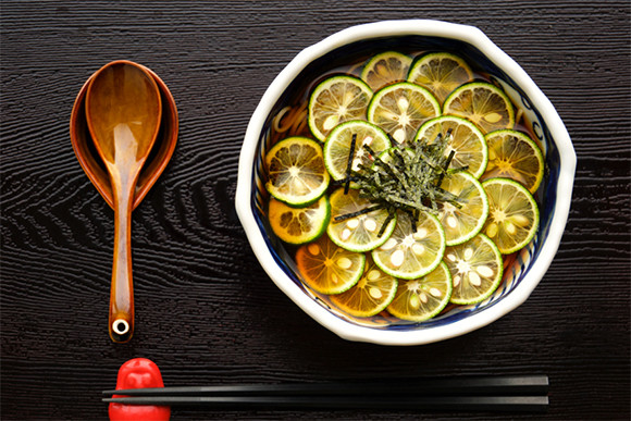 「賛否両論」の笠原将弘シェフが手がける「笠庵 賛否両論」では、三重の食材を生かした和食が味わえる。賛否両論のすだちそば¥1,400