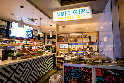 ミシュランシェフ、マイケル・ミーナがプロデュースするフードホールにあるウェルネスバー。ヘルシーなドリンクとフードを提供する。