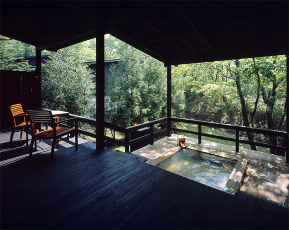 客室のテラスには森にせり出すように露天風呂が備えられている。敷地内の2つの源泉から汲み上げた湯はまろやかな感触で、肌をしっとりさせてくれる。