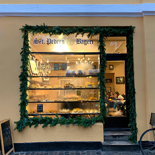 目の前まで行ったら、店名「Sct. Peders Bageri」のレトロな字体に即、惹かれた。