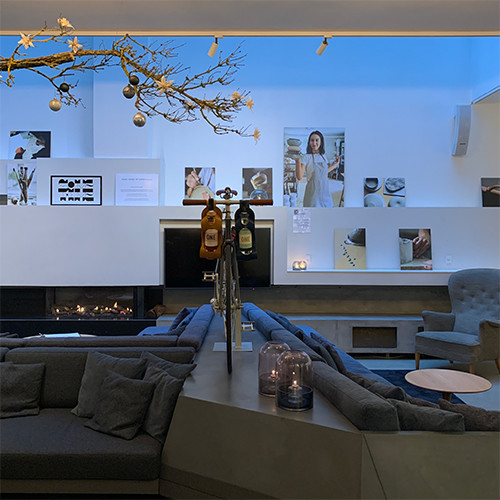 ホテルのロビーは、暖炉に薪がくべられ、広すぎない空間にソファが連なり、遠慮せずに気軽に座って寛げる感じがあった。