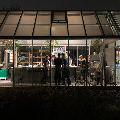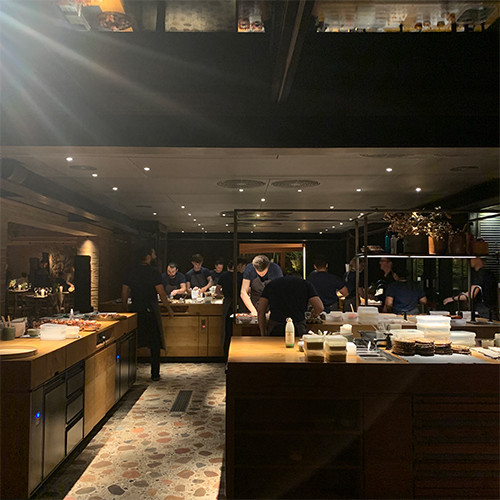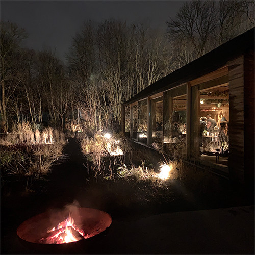 厨房や、発酵食品庫、テストキッチンなども見学させてもらい表に出ると、すでにダイニングではその夜2回目のサービスが始まっていた。