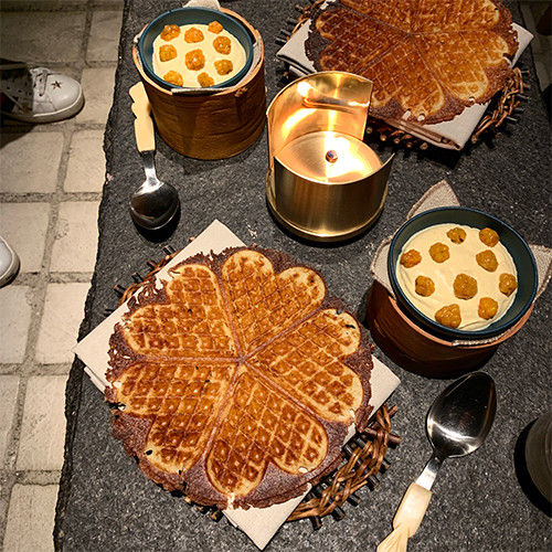 このワッフルがとても野性味のあるもので、森にある小屋の暖炉で焼かれたものを差し出されたかのようだった。