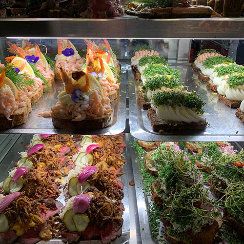 人気コーヒーショップやら、スモーブロー(オープンサンド)専門店やら、カウンターで食べられる飲食店が全体の3分の2くらいだろうか。