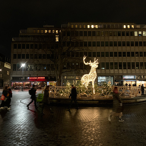 イルミネーションは、トナカイ。どこかに連れていってくれそうだ。
