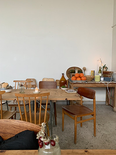 椅子がバラバラなのも、朝からロウソクが灯されているのも、大皿にオレンジじゃなくてカボチャが積まれているのも、少しずつちょっと日常と違うことに、静かにふつふつとワクワクした。