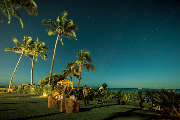 ラニクホヌアというパワースポット前にあるカバナでトリートメントが受けられる、というだけでも行く価値のあるフォーシーズンズ・リゾート・オアフ・アット・コオリナのスパ。ここで新たに始まったのが、夜からふたりでスパ施設を貸し切りにして、60分のマッサージの後、星空を案内される贅沢かつロマンティックなメニュー。スパークリングワイン片手に望遠鏡をのぞくと、青や黄色に瞬く星や天の川、土星のリングもくっきり。特別な夜を満喫して。