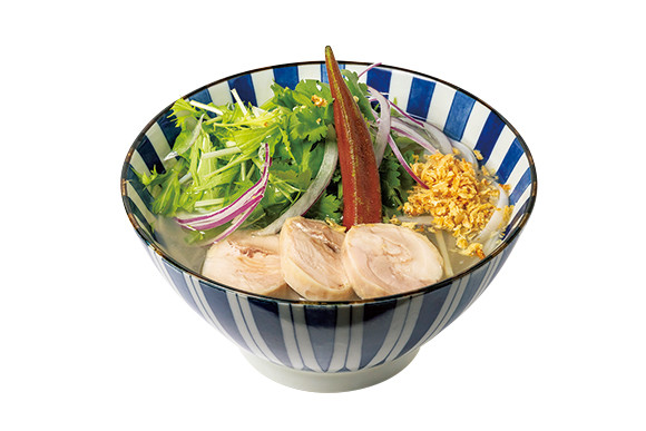 「ベトナムの家庭料理をアレンジして出しています」と、ベトナム人の両親を持つ青山和樹オーナー。幼い頃から親しんできた母の味をベースに、和食やフレンチなどさまざまな料理を経験してきた自らの感性を加味したメニューは、和とベトナムが自然に融合。たとえばキャットフィッシュは昆布締めにして、余分な水分を抜くとともに旨味を強く。ヌクチャム仕立てのタルタルソースで仕上げるといったあんばいだ。昆布出汁で深味を増したスープが美味なフォーも特筆もの。