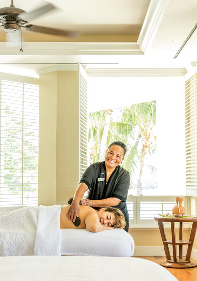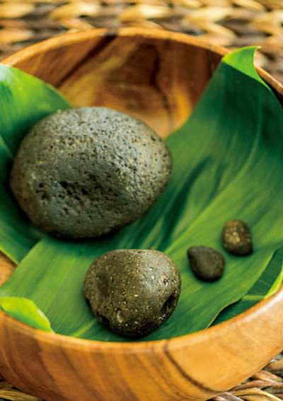このスパの前に、アプアケハウというストリームが流れ込む。その源泉にある石を使ったトリートメントを、セラピストのセロンダで受けてみたら……会ってすぐ心身の辛い部分を当てられてびっくり。大きい石を肝心なポイントに置いて少しずつ動かし、小さな石でコリをほぐしていく。ロミロミを基本に、関節を緩めたり伸ばしたり、その人に合わせたマッサージで全身にエネルギーが巡り、リフレッシュ。ヒーリングパワーを体感して!