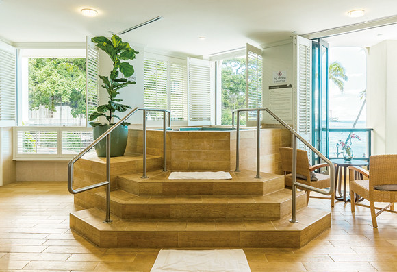 スパ施設は、トリートメントを予約すれば1日何度でも使用できる。50ドルで施設のみの利用も可能。