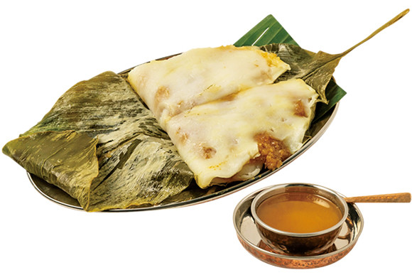 米粉生地にインドの黒糖とココナッツを挟んだデザート「ベレタライダガッティ」¥650。自家製ギーにつけても。