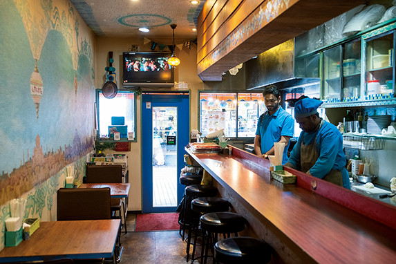 巣鴨で人気を集めた日曜限定のインド料理店が駒込に移転。カレーやビリヤニに交じって目を引くのが日本ではあまりなじみのない「ホットカティロール」(¥605)だ。インドのチャパティという平べったいパンに具材を巻いた軽食はチキンやマトンなど3種を用意。