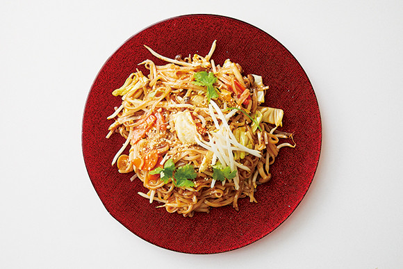 昨今はアジアの富裕層の間でもオーガニックブーム。有機食材にこだわるインド&タイレストラン、オーガニック・トーキョーでは「ヴィーガンパッタイ」(ランチ¥1,000、ディナー¥1,600)が人気だ。乳製品も肉も一切使わずにおいしく作る秘訣は、千葉の契約農家直送の濃い野菜と、タイ直輸入の“ヴィーガンソース”。濃厚な旨味がクセになる。