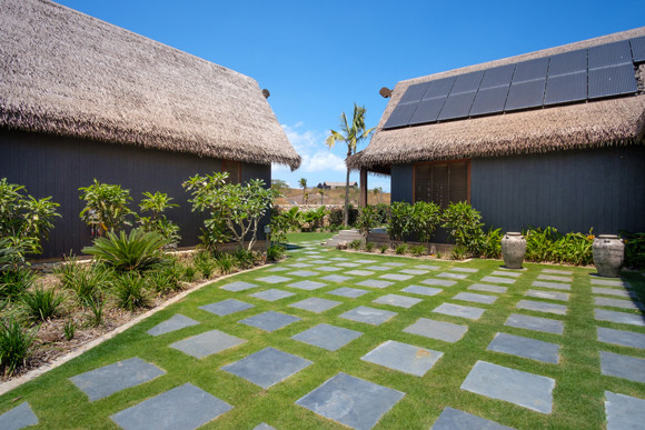 リゾートは、100%太陽光発電によって運営されています。テスラ社のバッテリーなどを導入し、太陽光から転換された電力を蓄電し、ヴィラや各リゾート内施設で使用。海水を淡水に処理するためにも、太陽光エネルギーが用いられています。