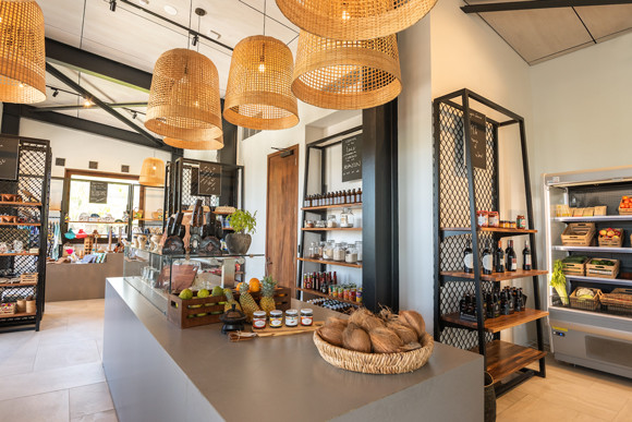 戸建てになった「グルメ・デリ」では、焼きたてのグルテンフリーのベーカリーや新鮮な野菜や果物で作った自家製プロバイオティクスも売られていて、ベジタリアンのゲストなどにも人気。リゾートの裏手には鶏が放し飼いで飼われていて、なんと、余った食べ物を処分してくれる豚くんもいます!