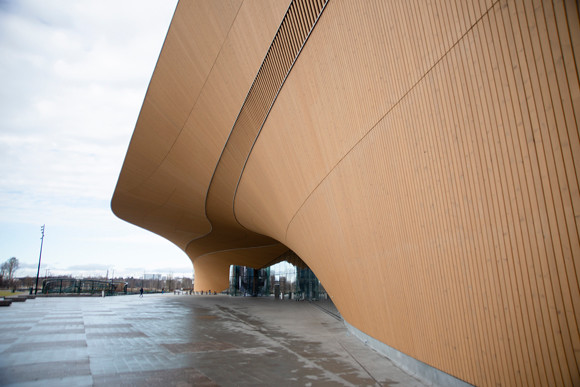 カーブ状の形態が特徴的なヘルシンキ現代美術館の外観。