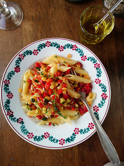 これは、焼いたパンにのせてタルティーヌにしたり、肉や魚の付け合わせにも。冷めてもおいしい常備菜になります。今日はパスタと和えました。