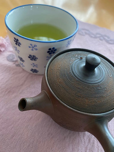 目覚めの一杯は、コーヒーではなく緑茶が日常。少し前に買ったお気に入りの一人用の小さな急須で淹れています。湯呑みは和洋問わず、ティーカップで飲むこともあります。