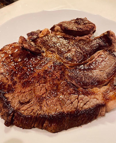 そしてメインは1ポンドのステーキ。家族揃って食べる時は、この大きさを焼いて分けます。子どもは火通りのいいところ、私は脂の少ないところと、各々の好みの部分を、好きな量だけ切り分けられるのでおすすめです。