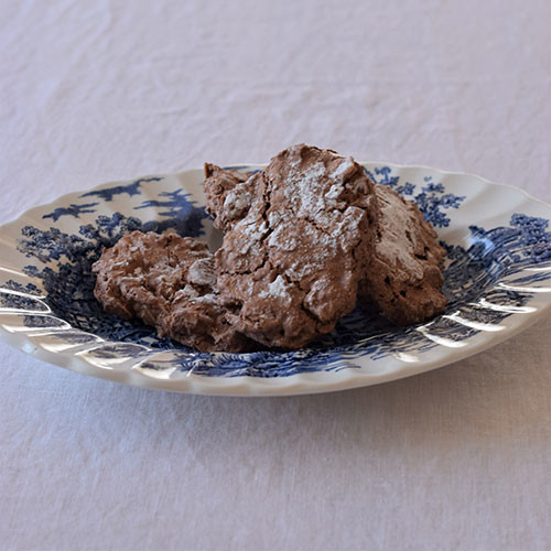少しずつ残っていたクルミやヘーゼルナッツ、スライスアーモンドを入れて、カカオ風味の焼き菓子に。ナッツのカリッとした食感に、ココナッツの甘い香りが合います。ふんわり柔らかな、淡いトーンのお菓子も好きですが、個性の強いこんなお菓子も大好きです。フランス的なお菓子に仕上がったので、“フランス風”と名付けました。しっかり固いメレンゲを作り、ほかの材料を加えたら、ゆっくりと混ぜるのがポイントです。