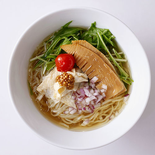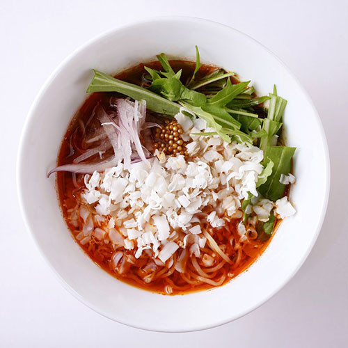 その言葉どおり、あっさりとしたなかにも舌にじんわりと残る味わいの余韻は深く、もちろん化学調味料は無添加。隠し味のレモンの酸味が全体の味を引きしめている。いっぽう、自家製ラー油の風味が食欲をそそる麻辣味の「ベジタブルタンタンヌードル」は花椒の香りが食欲を刺激。辛味と旨味のバランスのとれた秀作。現在は店舗が休業中のため、オンラインショップを利用して自宅で味わいたい。