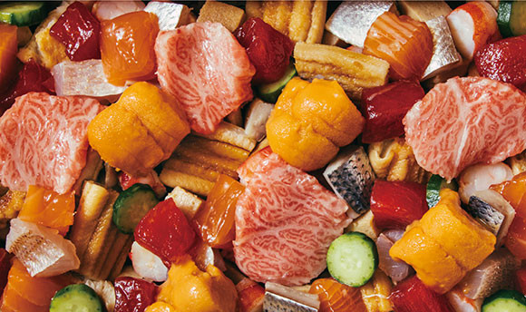 革新的な鮨店の、豪華なバラちらし。