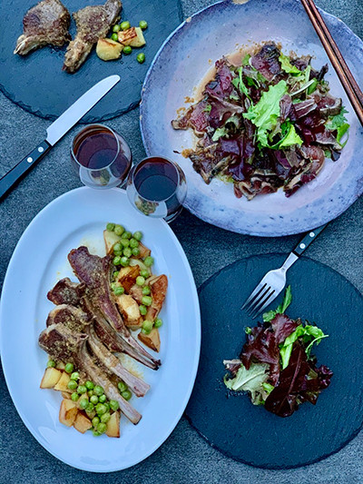 夜は、カツオのサラダとラムチョップを作りました。