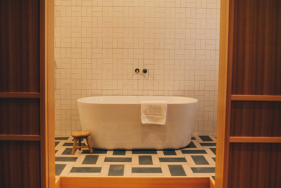スイートルームに設えられた、広いバスルームとバスタブ。