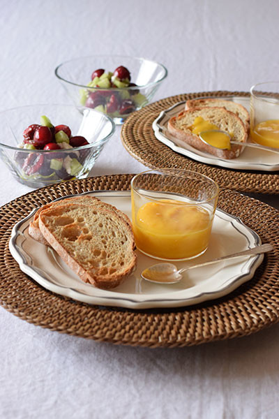 果汁たっぷりの夏文旦で作ったカード(*)を、カリカリに焼いたトーストにたっぷり塗っていただきます。ヨーグルトにもよく合います。