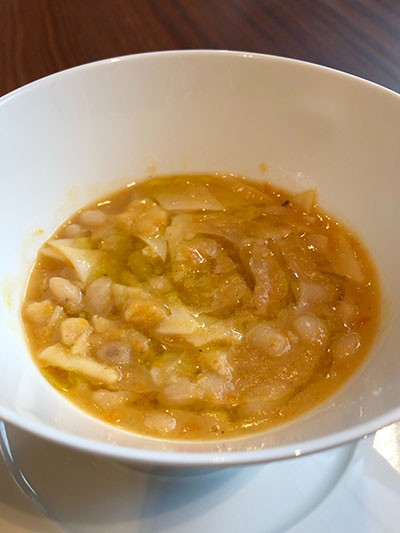 「白インゲン豆のスープ」は、4種のスープセット(¥3,200)の一品。ほかにニンジンスープ、魚介のスープ、ビシソワーズスープも楽しめる。