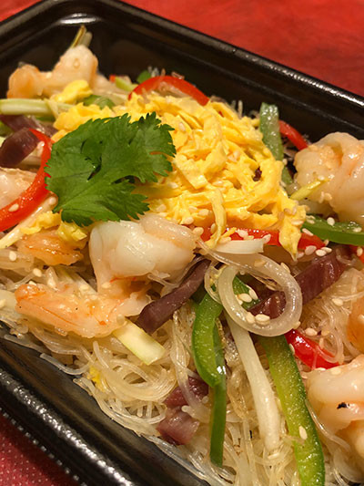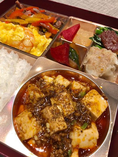 おせち料理のレベルの高さでも知られる同店だけに、お弁当のノウハウも確か。鶏の唐揚げにしても、油淋鶏風にピリ辛の甘酢タレに絡め、冷めてもおいしく食べられるようアレンジしている。さらに注目したいのは、プラス¥2,700でセットにできる「蟹肉入りフカヒレスープ」。フカヒレが1人前20gも入る贅沢さもさることながら、スープそのものが実に美味。淡麗にして滋味豊か。飲むほどに深みが増していく、そんな味わいなのだ。聞けば、老鶏と豚の赤身肉、金華ハムを約6時間あまり煮込み、布で丁寧に漉してから使う手間のかかった逸品、香港では上湯と呼ばれる最高級のスープだ。また、具だくさんの「五目ビーフン」も隠れたファンの多い佳品。温め直せばよりおいしくいただける。このほかにも、店のメニューはほぼテイクアウトOK。特別メニューや通常のアラカルトをウーバーイーツで注文することも可能だ。